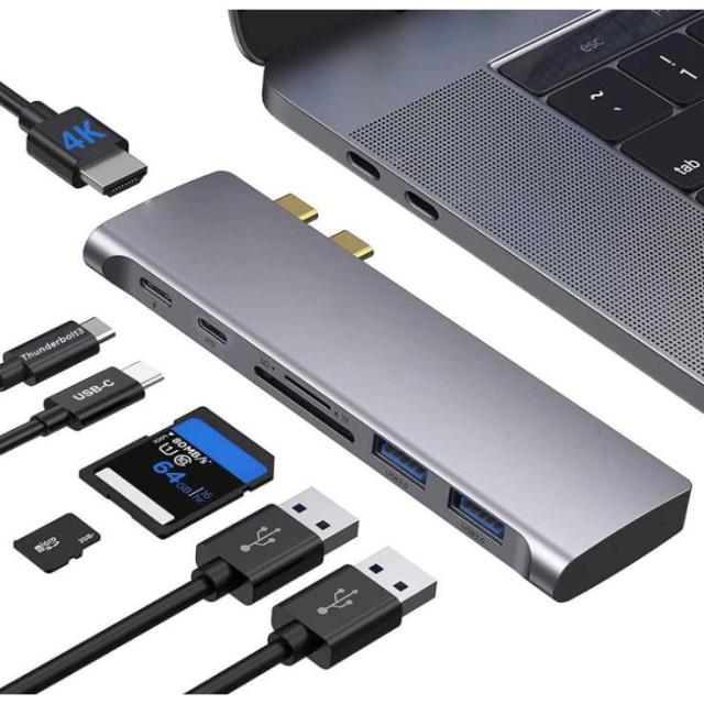 本製品とMacBook Pro/Air接続するだけで、USB Type Cポート*2、4k HDMI (30Hz)HDMI*1、USB 3.0ポート*2、SDカード/MicroSDカードの差込口が増やせ、コンパクトで場所も取らずあなたのノートPCをもっと活躍させます。