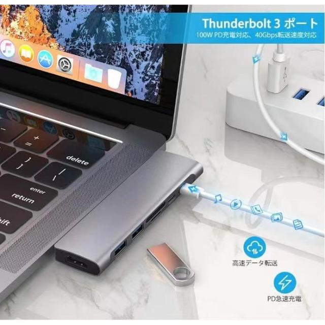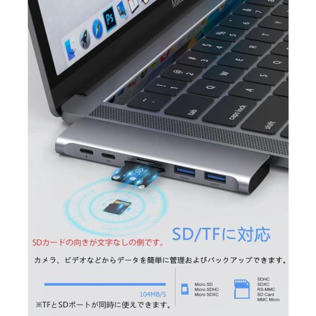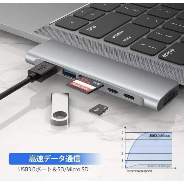 USB TypeCハブ MacBook Air USBハブ macbookハブ macハブ 7in1Air専用 4K HDMI映像出力 PD急速充電 USB-Cデータ伝送 USB3.0*2 TF SDスロット