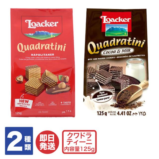ローカー loacker ウエハース クワドラティーニ 2種(ナポリターナ / ココア&ミルク)【ロアカー イタリア スイーツ 輸入菓子 焼菓子 ウエハースサンド プチギフト 退職 送別会 お返し 挨拶 お礼 粗品 景品 ハロウィン 土産 お取り寄せ】