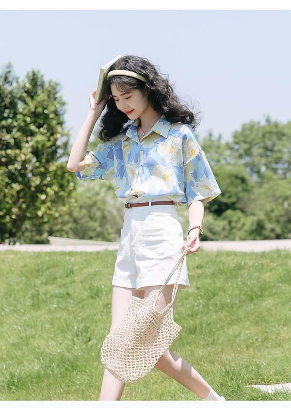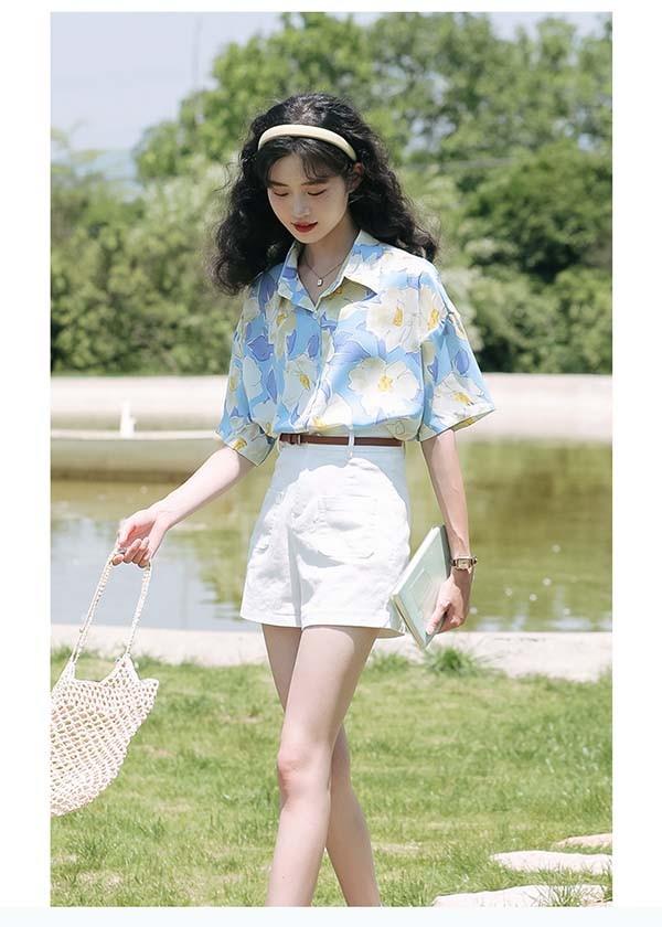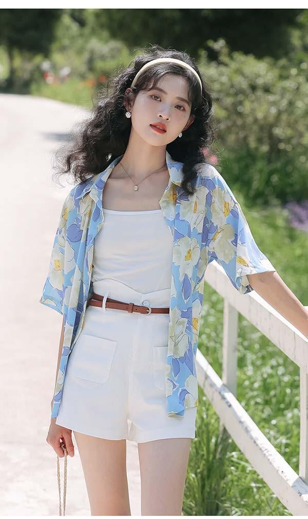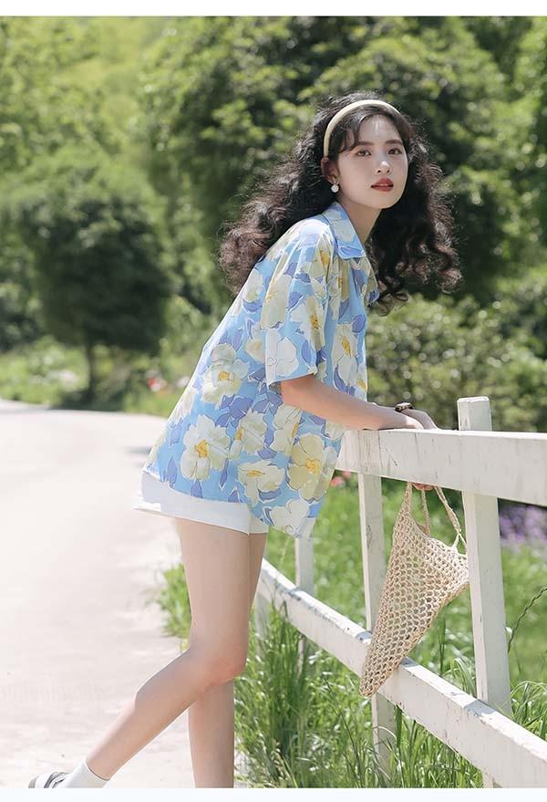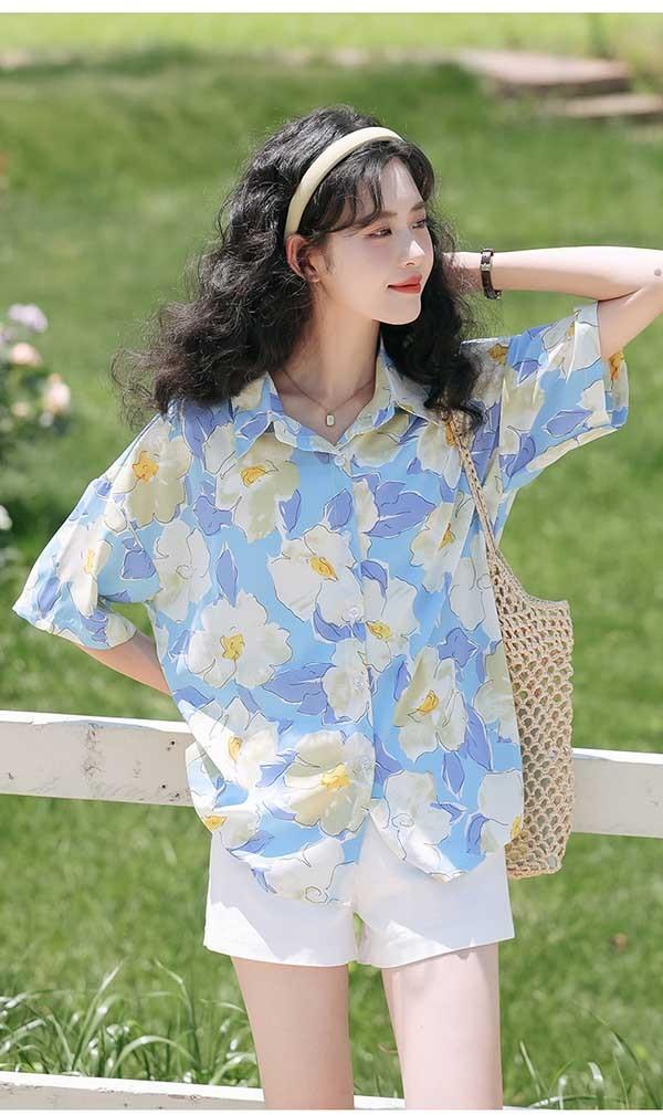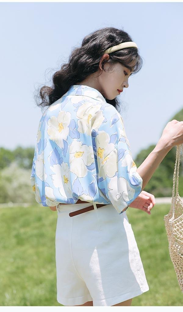 アロハシャツ レディース アロハ柄 花柄 五分袖 上着 夏 秋 シンプルデザイン ハワイアン 夏物 開襟シャツ 日焼け止め カジュアル オープンカラー レトロ アニマル ブルー 水色 dd114g5g5la