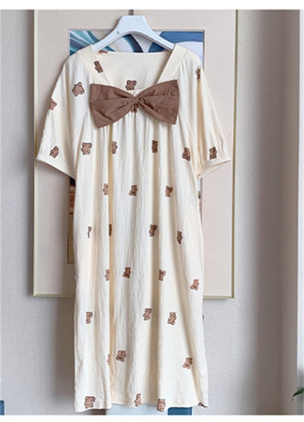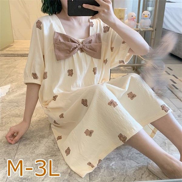 ルームウェア レディース パジャマ リボン 動物 アニマル クマ柄 かわいい ワンピース 夏 可愛い ルームウェア 半袖 部屋着 大人 体型カバー やわらか 涼しい お洒落 大きいサイズ 3L パジャマ 誕生日 ギフト 結婚祝い プレゼント きれいめ dh086g5g5la