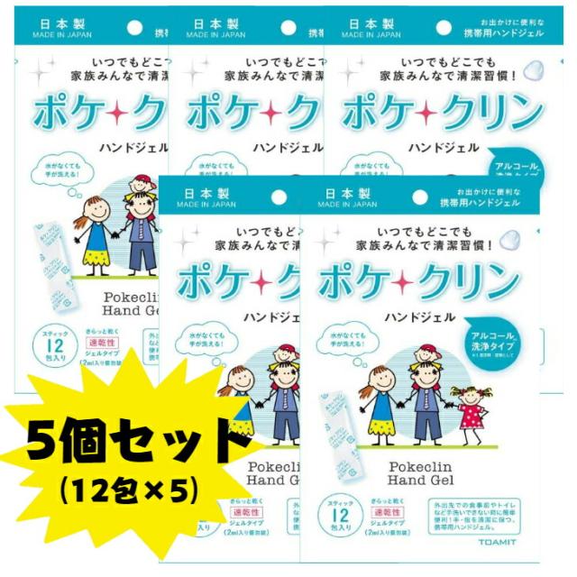 ポケクリン ハンドジェル 個包装 アルコール 手洗い 携帯用 お出かけ 日本製 12包入り 5個セット