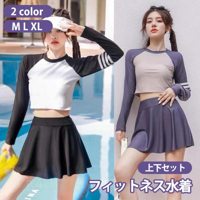 水着 長袖 体型カバー 運動風 上下セット 競泳水着 レディース Aライン 春 夏 無地 細見せ 大きいサイズ パッド付き ワイヤーなし フィットネス水着 露出控えめ スポーツ風 女性 可愛い 盛れる おしゃれ 韓国風 練習用 快適 速乾 海 プール 温泉