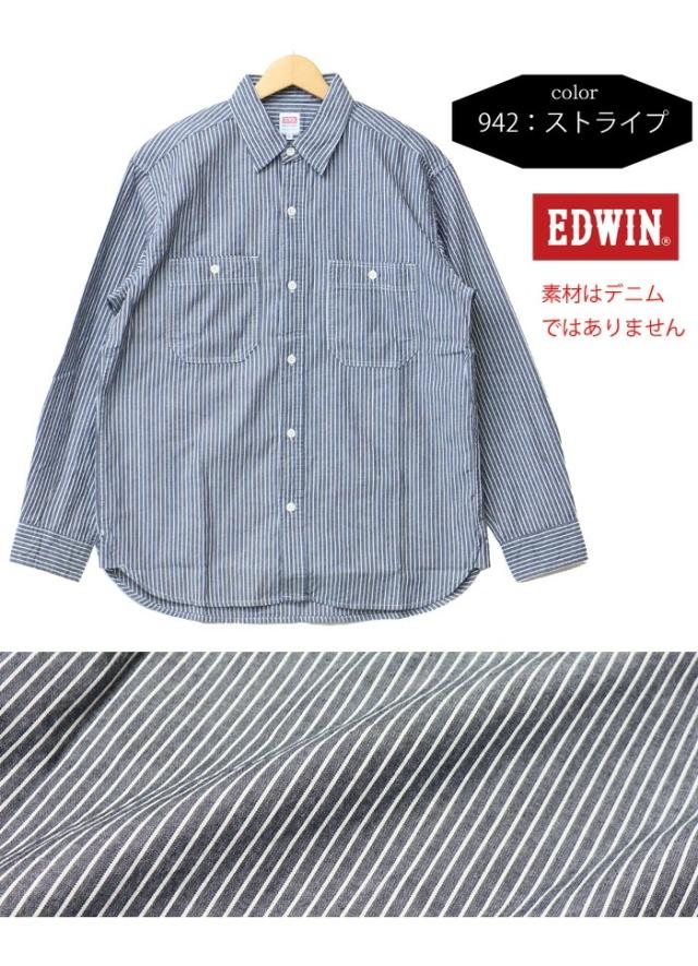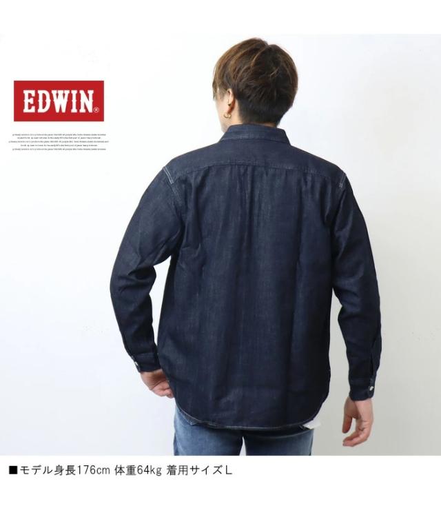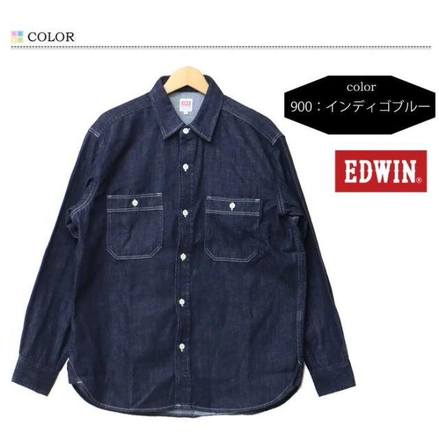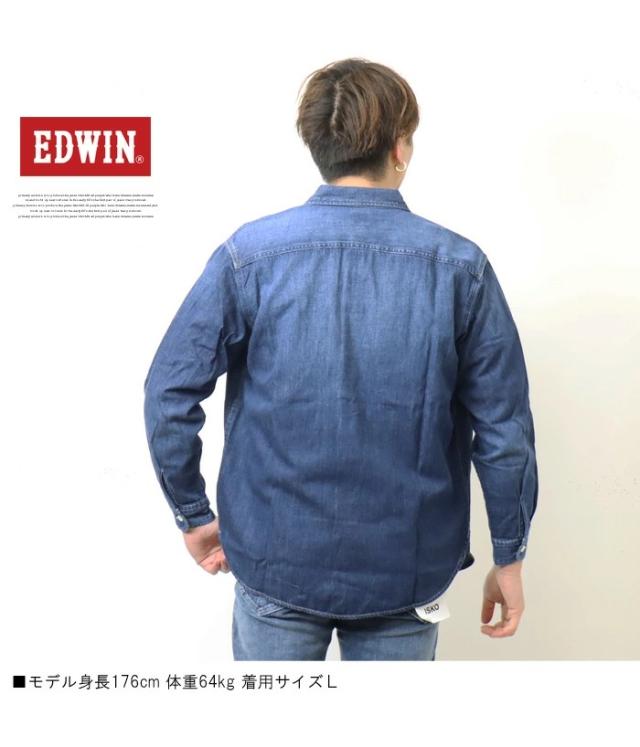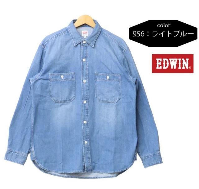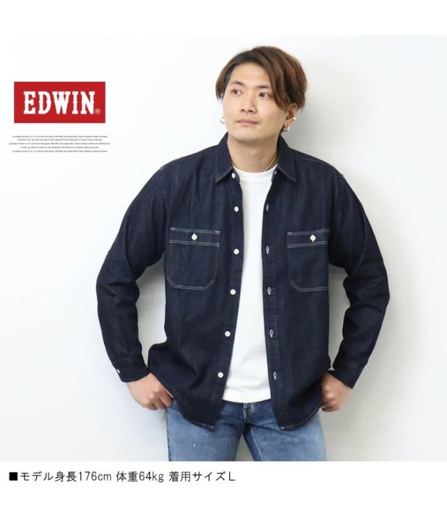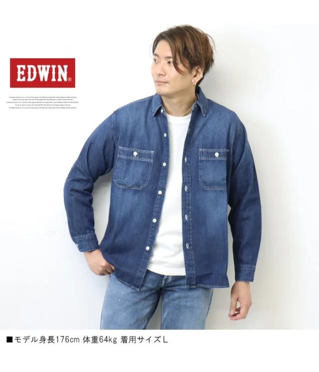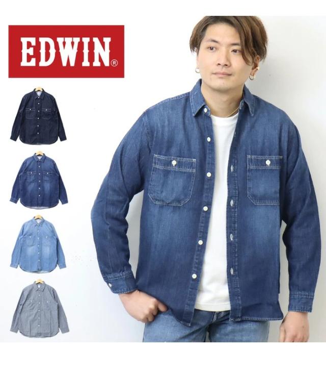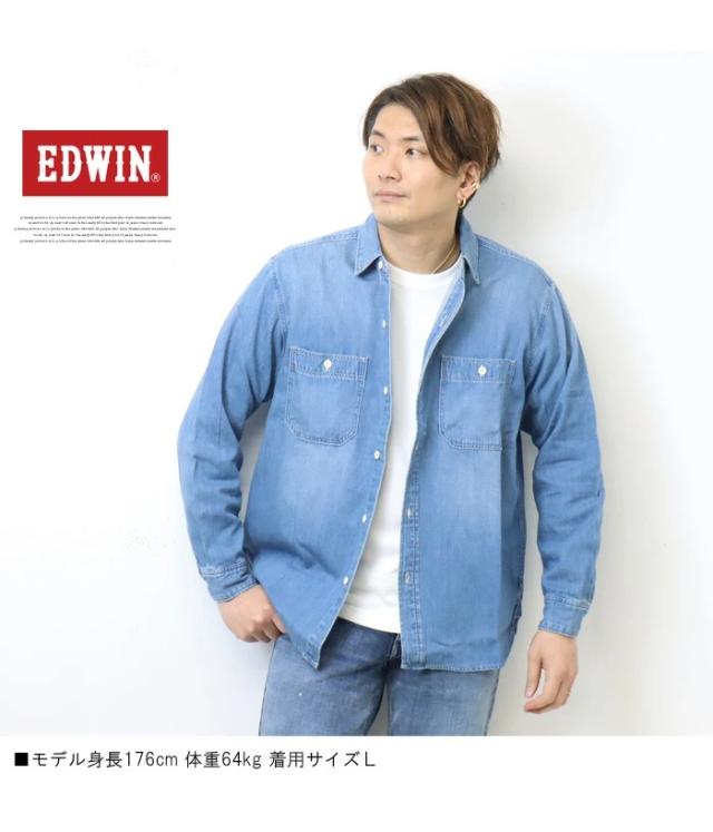 大きいサイズ EDWIN エドウィン デニム ワークシャツ デニムシャツ 長袖シャツ メンズ デニシャツ 送料無料 ET2138