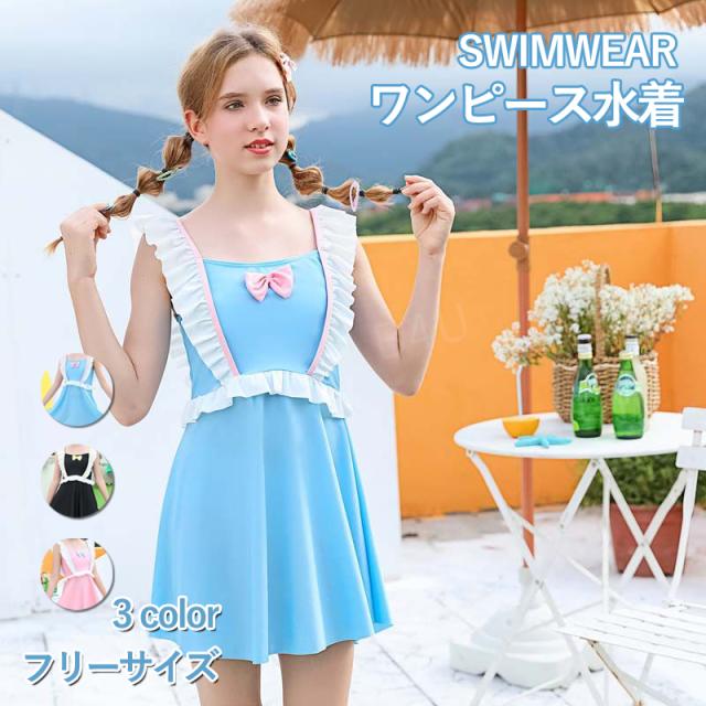 ワンピース 水着 オールインワン レディース ワンピース水着 オトナ女子 フリル エレガント ガーリー シンプル リボン お洒落 可愛い 露出控えめ 韓国風 パッド付き 盛れる 水陸両用 体型カバー 春 夏 スイムドレス 細見せ 無地 快適 速乾 海 プール ビーチ 温泉