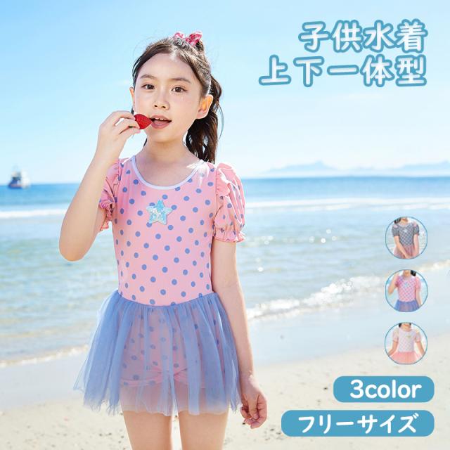 キッズ水着 ワンピース水着 オールインワン スイムウェア 女の子 キッズ 水着 子供 フリル レース 星 ドット柄 パフスリーブ ジュニア 女児 小学生 体型カバー 一体式 半袖 大きいサイズ かわいい ワンピース レデイーズ 露出控えめ 春 夏 海 プール 温泉