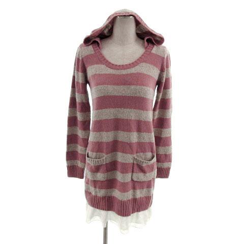 【中古】未使用品 EAST BOY ワンピース ニット フーディー レイヤード風 長袖 ウール混 ボーダー ピンク グレー 9