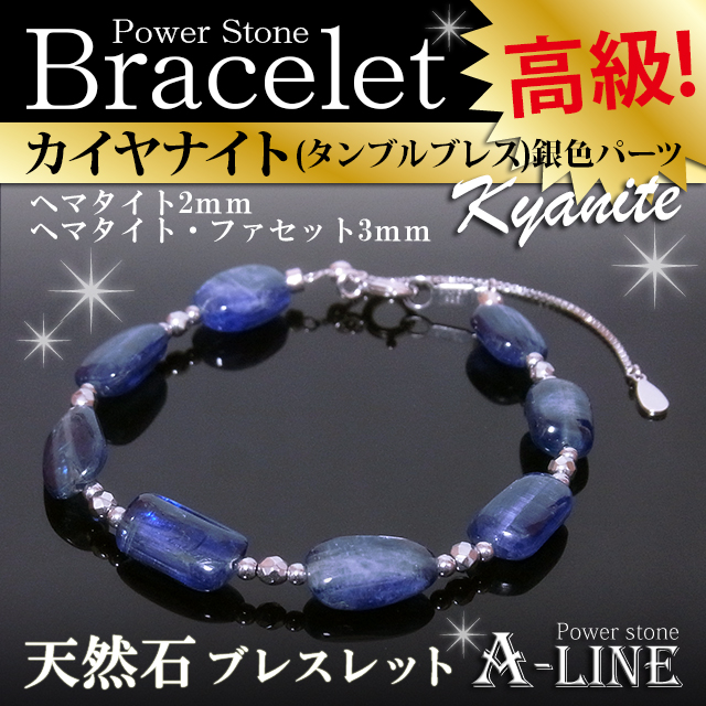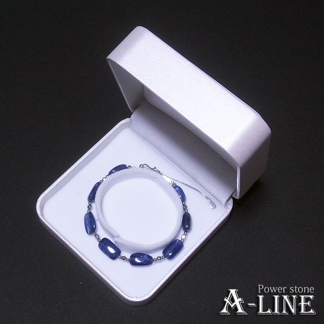 パワーストーン 高級ワイヤーブレスレット カイヤナイト 銀色パーツ 高級ケース付き ppw314