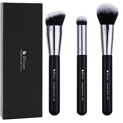 DUcareドゥケア メイクブラシ ファンデーションブラシ コンシーラーブラシ & チークブラシ 3本セット 最高級のタクロンを使用 柔らかい 粉含み良い 人気ブラシ ブラック