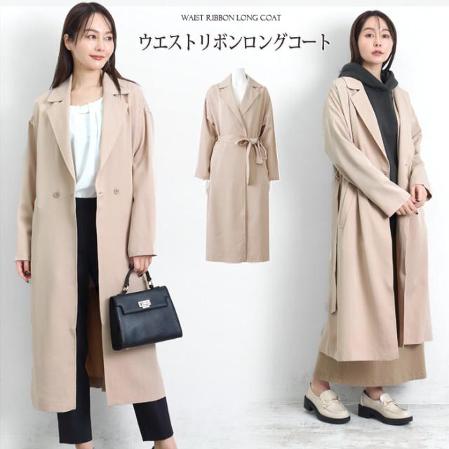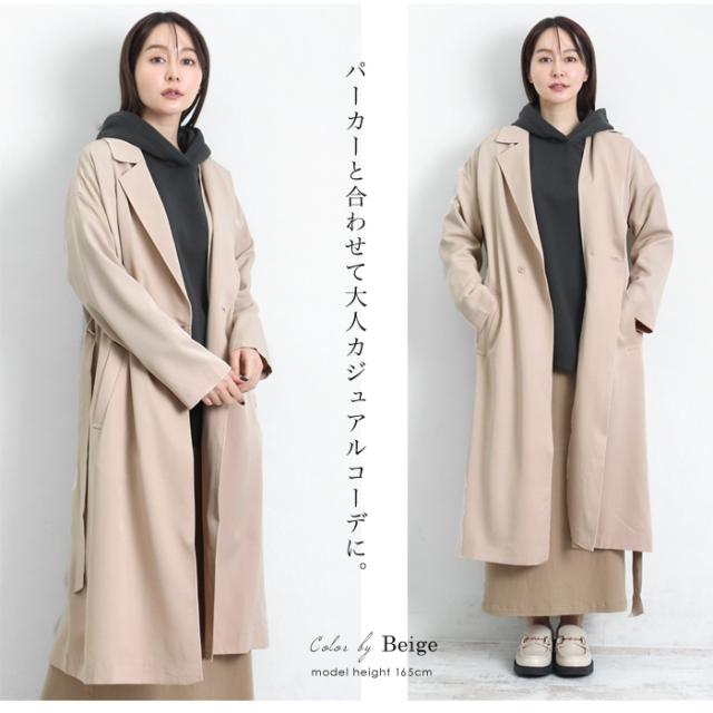 コート トレンチ レディース 春 秋冬 アウター コート トレンチ ベルト付き レディース アウター ロングコート テーラードカラー ベージュ 大きいサイズ LL 4783