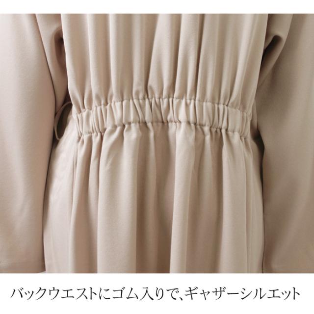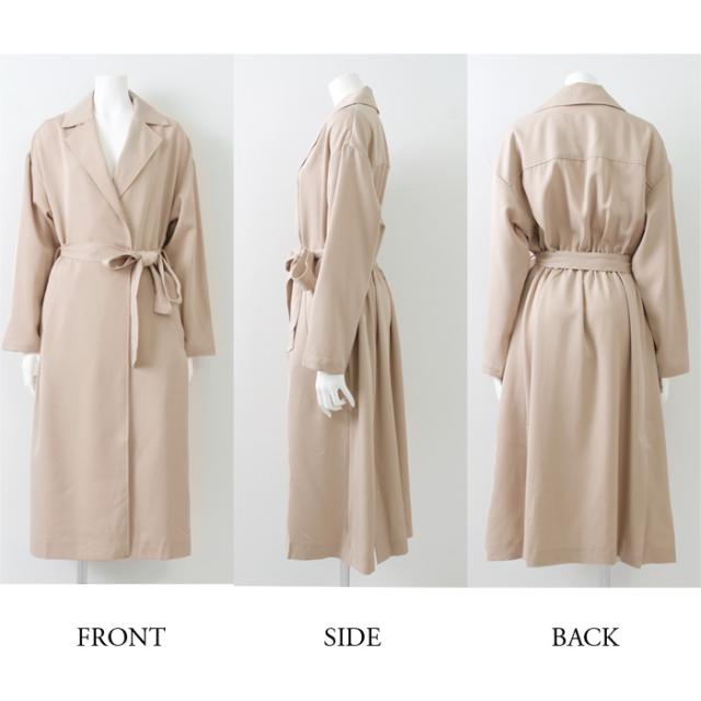 裏地無しバックギャザーロングコート♪コート トレンチ ベルト付き レディース アウター ロング ロングコート テーラードカラー 襟付き 無地 羽織 長袖 オフィス ビジネス ベージュ 大きいサイズ LL