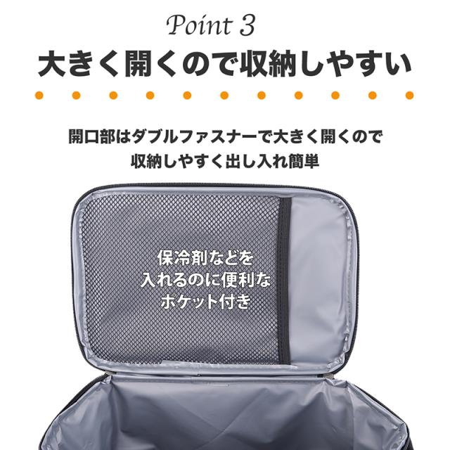 大きく開いて出し入れしやすいスクエア型保冷保温バッグ