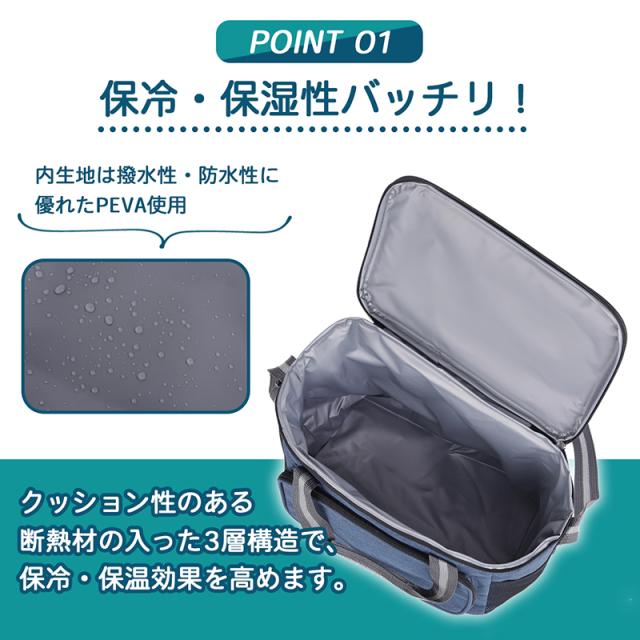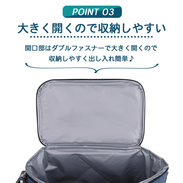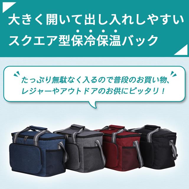大きく開いて出し入れしやすいスクエア型保冷保温バッグ
