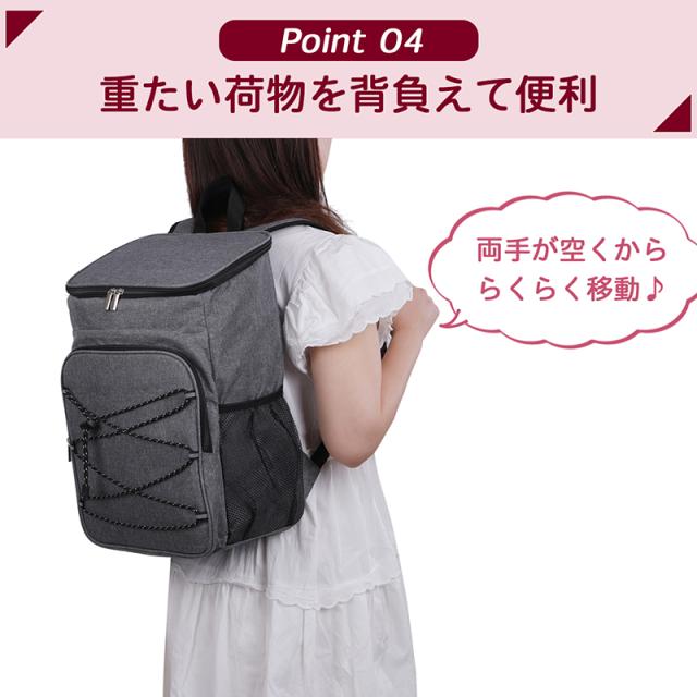 背負えるので持ち運びがしやすく、普段のお買い物、レジャーやアウトドアのお供にピッタリ!