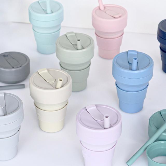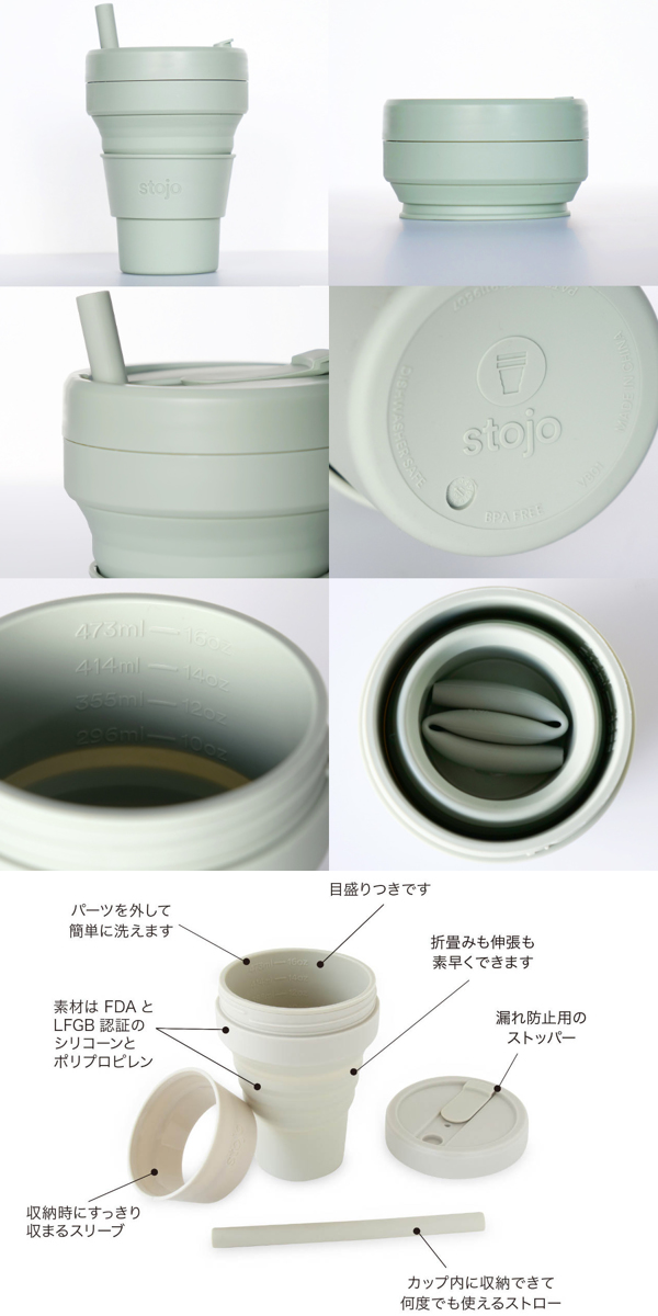 タンブラー stojo BIGGIE 470ml 持ち運び 蓋付き ストロー付き 折りたたみ ( ストージョ 水筒 シリコン カップ 食洗機対応 ふた付き マイカップ マイタンブラー コップ アイス ホット オフィス 車 )