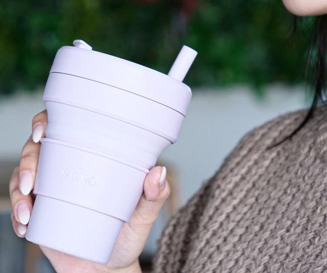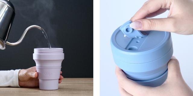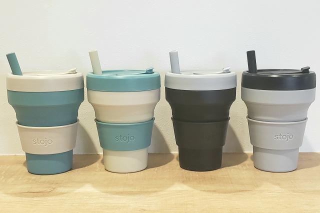 stojo(ストージョ)とは、英単語 stow(場所・容器にしまい込む)と、スラングのJOE(コーヒー)を組み合わせた造語です。その名のとおり、コーヒーを飲んだ後にカップをクシャッと折り畳んで、バッグに入れて手軽に持ち運べます。