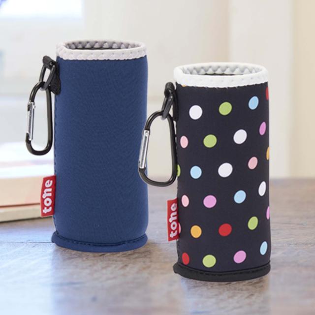 ●水筒やペットボトルの中身が少ない時でも倒れない、自立するボトルカバーです。