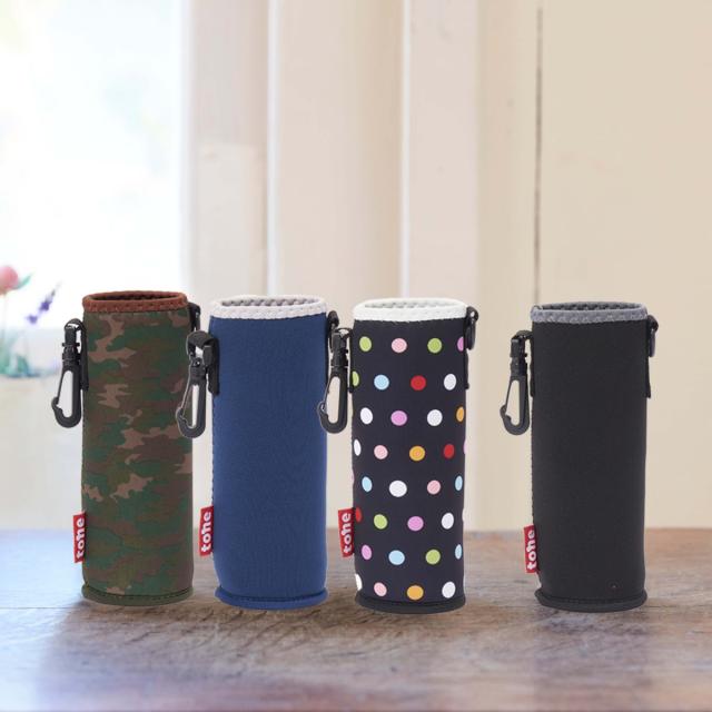 水筒やペットボトルの中身が少ない時でも倒れない、自立するボトルカバーです。ボトルカバーに何も入っていない時でも自立するように、フラットな形の底面がしっかりと支えてくれるのでストレスなく使えます。