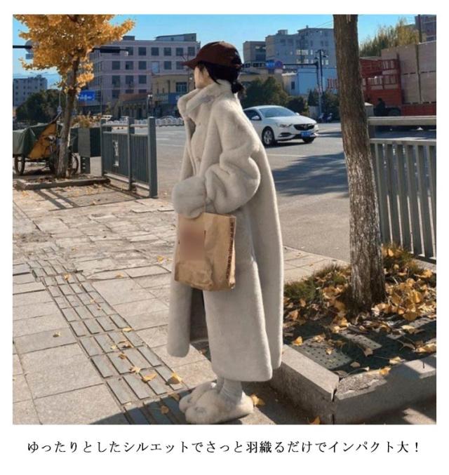ファーコート ロング丈 エコファー コート ジャケット ボリュームファー レディース ブルゾン ムートンコート チェスターコート ハイネック 長袖 無地 ボタン 軽い 暖かい 可愛い 膝下丈 肌触り 柔らい 毛皮 防寒