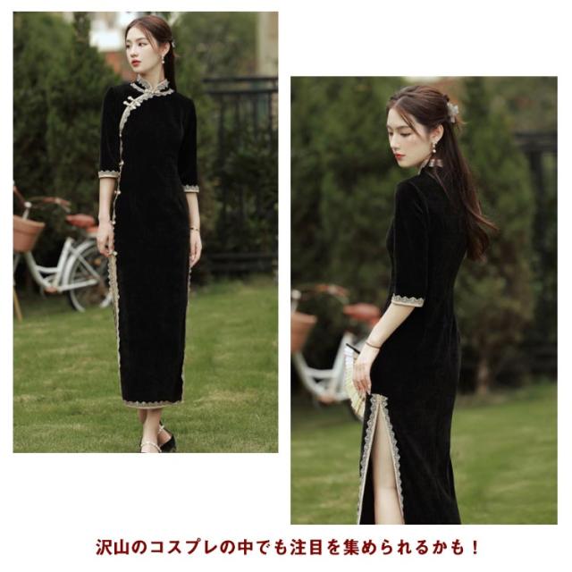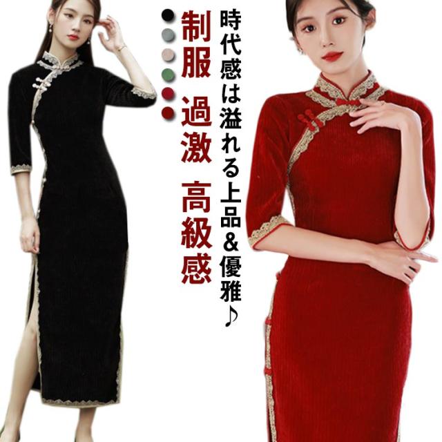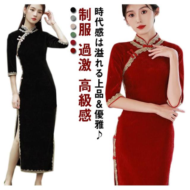 チャイナドレス ロング丈 チャイナ服 チャイナ 制服 コスチューム 衣装 コスプレ スリット ロングドレス セクシー レディース パーティ イベント 撮影 ハロウィーン エロ 過激 高級感 セクシーコスプレ