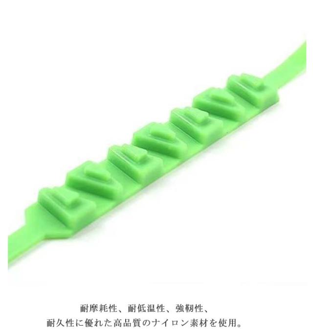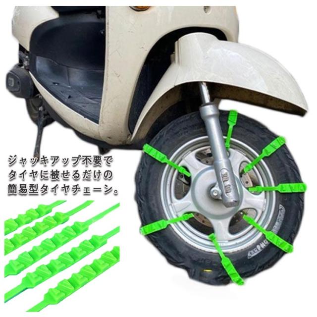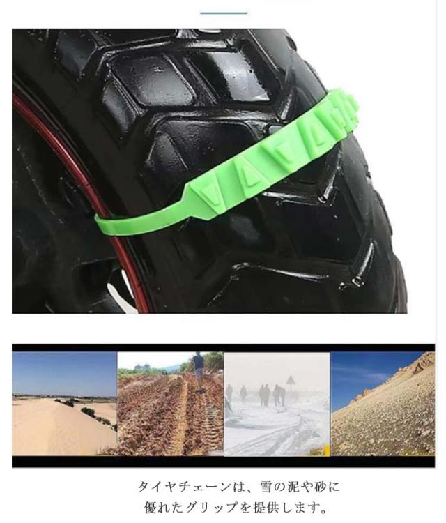 | ジャッキアップ不要でタイヤに被せるだけの簡易型タイヤチェーン。 お得な10本セットで、オートバイやスクーターのタイヤに対応可能。 タイヤチェーンは、雪の泥や砂に優れたグリップを提供します。 耐摩耗性、耐低温性、強靭性、耐久性に優れた高品質のナイロン素材を使用。 季節を問わず、冬、雪のときだけではなく、スキー、クロスカントリー、野外冒険、山岳運転にも。 | |