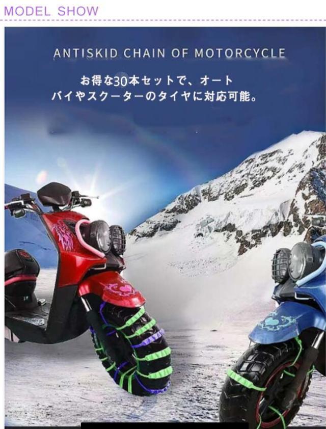 30本セット タイヤチェーン 非金属 雪チェーン 簡易型 オートバイ用 スクーター用 滑り止めチェーン 簡単装着 雪道 悪路対応 滑り止め 事故防止 冬 車 雪道 汎用 緊急用 タイヤベルト スノーチェーン