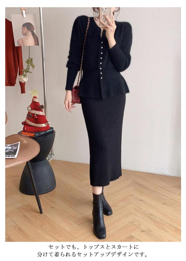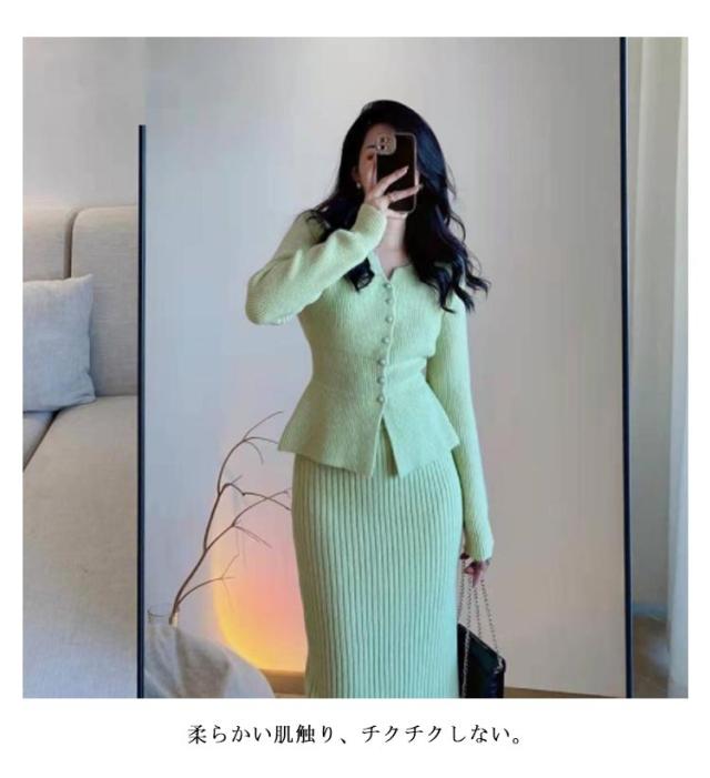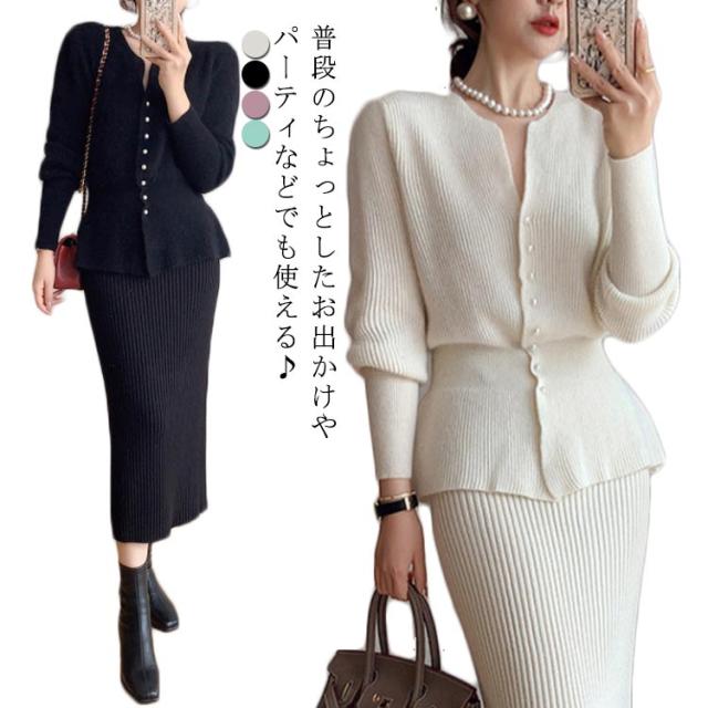 送料無料 ニットセットアップ タイトスカート レディース ロングスカート セットアップ ニットスカート 着痩せ 通勤 トップス カジュアル エレガント オフィス ナチュラル お呼ばれ 日常デート春秋冬 長袖 着痩せ トップス+スカート 2点セット