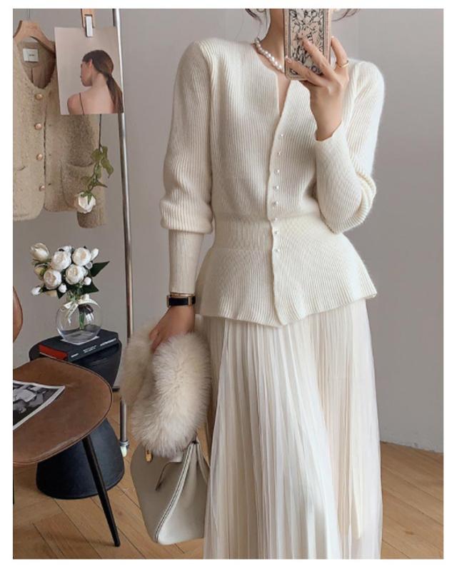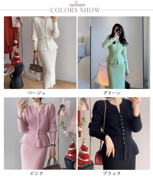 | 普段のちょっとしたお出かけやパーティなどでも使える♪ 柔らかい肌触り、チクチクしない。 セットでも、トップスとスカートに分けて着られるセットアップデザインです。どんなボトムスにも合わせやすい短すぎず長すぎずな「ジャスト丈」。 このセットでトータルコーデが完成な旬の「ニットセットアップ」。 | |