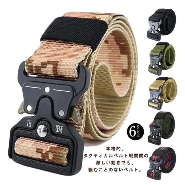 送料無料 ベルト メンズ ワンタッチ カモフラージュ柄 タクティカルベルト ナイロンベルト ミリタリー バックル 装備 作業用 サバイバルゲーム アウトドア DIY ネイビー グリーン ブラック ブラック 125cm
