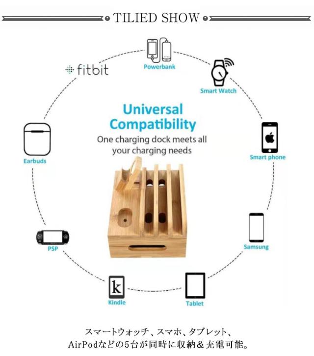 | ・お手持ちのデバイスを充電しながらスマートに収納!マグネット式の「充電ステーション」が新登場。 ・スマートウォッチ、スマホ、タブレット、AirPodなどの5台が同時に収納&充電可能。 ・スマホ、タブレート、電子書籍などの様々なデバイスに対応。 ・各デバイスの充電コードと充電ポートを穴から繋げることができるので、ごちゃつきがちなコード類もボックス内にまとめておけるのが嬉しい! ・ボックスの上部と下部が分解できて、マグネット式でカッチリと連結が可能です。 ・温かみのある竹素材は高級感があり環境にも優しい。 ・ご自宅のリビングやワークスペースはもちろん、オフィスでも活躍! ※注意:モバイルバッテリー(USB充電器)は付属しません。 | |
