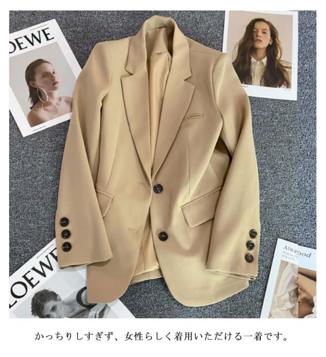 カジュアルスーツ レディース テーラードジャケット 2B 裏地付き 薄手 秋 春 アウター スーツジャケット ゆったり ミドル丈 スプリングコート 韓国ファッション 大人可愛い おしゃれ 無地 シンプル 【送料無料】