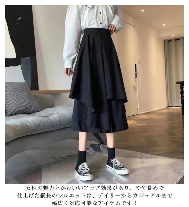 | 快適な穿き心地と美しいアシンメトリーシルエットのAラインスカートです。 ハイウエストデザインが脚長効果を高め、体型カバーが抜群。 女性の魅力とかわいいアップ効果があり、やや長めで仕上げた縦長のシルエットは、デイリーからカジュアルまで幅広く対応可能なアイテムです! | |