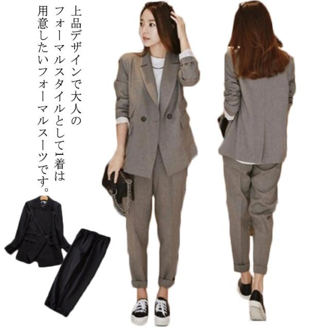 セットアップ レディース パンツスーツ テーラードジャケット パンツ 黒 ブラック 結婚式 2点セット 秋 冬 大きいサイズ フォーマル 通勤 入学式 卒業式 入園式 卒園式 母親 かっこいい ママスーツ 30代 40代 50代 送料無料