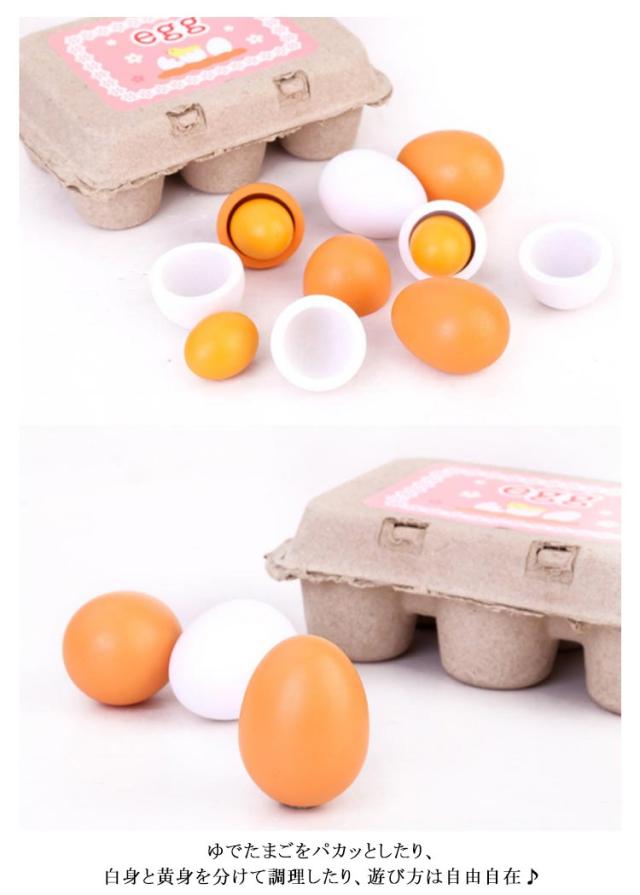 | ・コロコロとした木製の卵がカワイイ! ・お店屋さんごっこ、ままごとなどに使えるかわいいアイテムです。 ・卵は6個の内3個は白身と黄身に分かれています。 ・ゆでたまごをパカッとしたり、白身と黄身を分けて調理したり、遊び方は自由自在♪ ・幼稚園・保育園の室内遊び、おままごと遊びにおすすめな木製おもちゃです。 | |