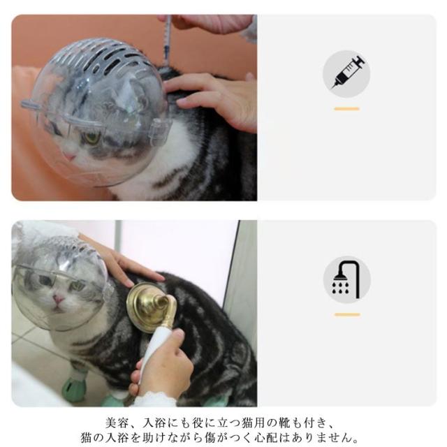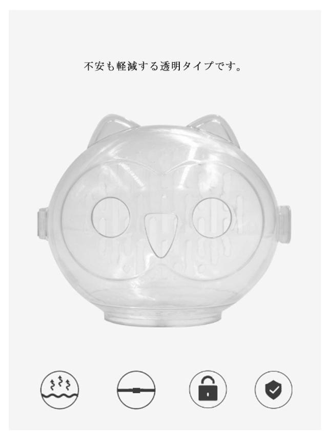 | シャワーや爪切り、目薬差し、耳掃除、美容などの噛み防止、手術後の傷舐め防止にお得なマスクセットです。 不安も軽減する透明タイプです。 前後には通気穴が開いており、通気性も確保して蒸れを防ぐ仕様です。 小さなサイズなので、外出先に持って行きやすいのも魅力的です。 安全な素材で猫に負担がかかりません。 美容、入浴にも役に立つ猫用の靴も付き、猫の入浴を助けながら傷がつく心配はありません。 猫ちゃんのお風呂、爪切り、注射、投薬の場合でよく使うことができます。 また、猫ちゃんの傷舐め、拾い食いや噛みつきを防ぐために口輪を着せるのも必要になります。 | |