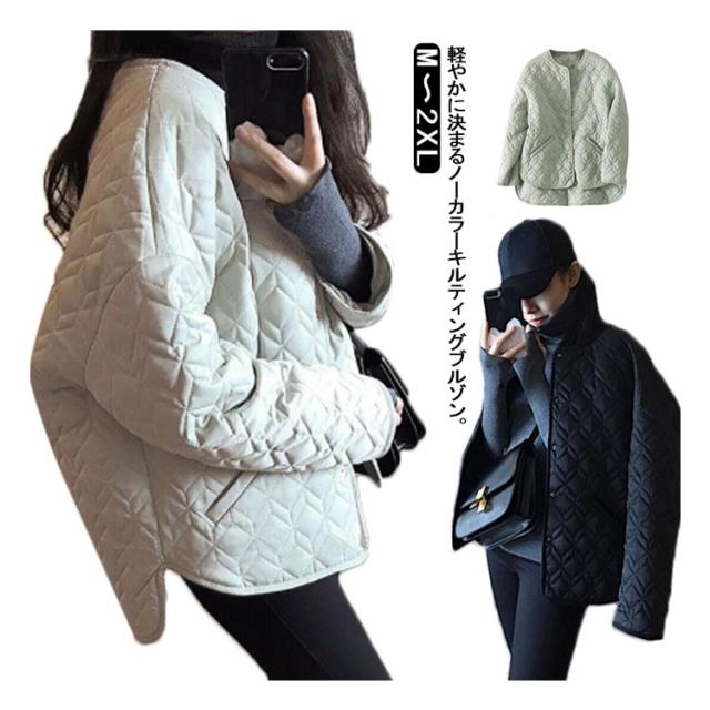 ジャケット キルティング ジャケット レディース アウター 上着 中綿 ブルゾン レディース キルティングコート キルティング スリット 羽織り 前開き 前ボタン 前後差 送料無料