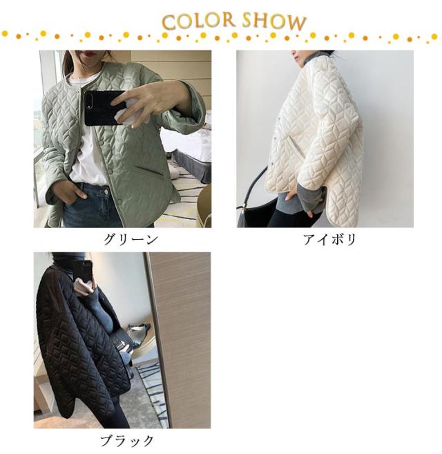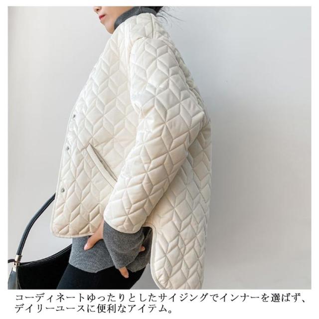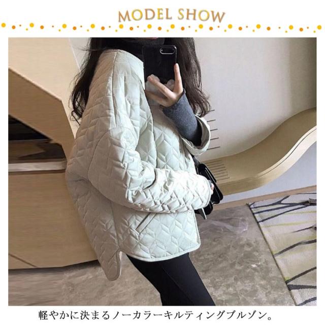 | 軽やかに決まるノーカラーキルティングブルゾン。 裏ボア仕様で保温効果バツグン。 コーディネートゆったりとしたサイジングでインナーを選ばず、デイリーユースに便利なアイテム。 首元はすっきりとしたノーカラーで、タートルネックニットやストールとの合わせも決まります。 | |