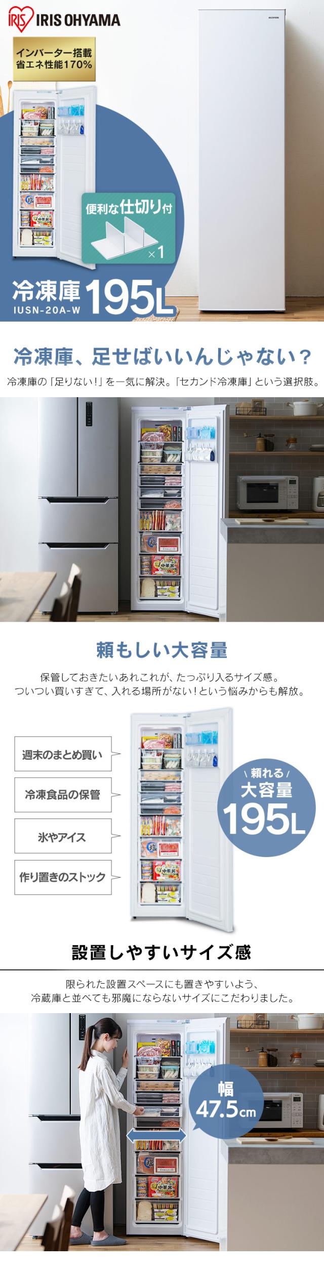 冷凍庫 195L IUSN-20A-W ホワイト 冷凍庫 家庭用 自動霜取り 霜取り 収納 ファン式 前開き フリーザー 冷凍ストッカー 冷凍 キッチン家電 作り置き ストック 自動霜取 省エネ エコ 節電 アイリスオーヤマ 送料無料 安心延長保証対象