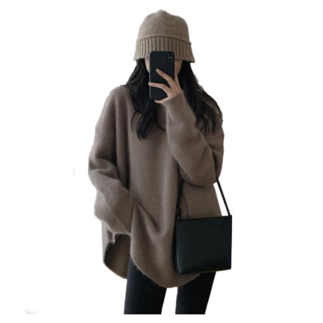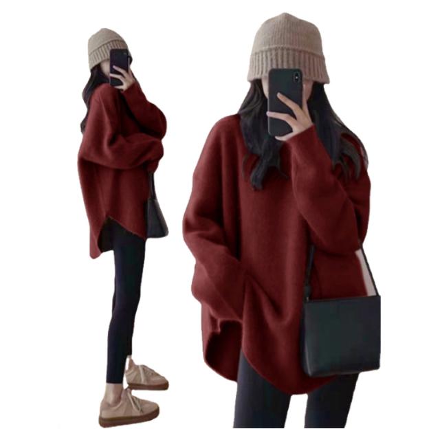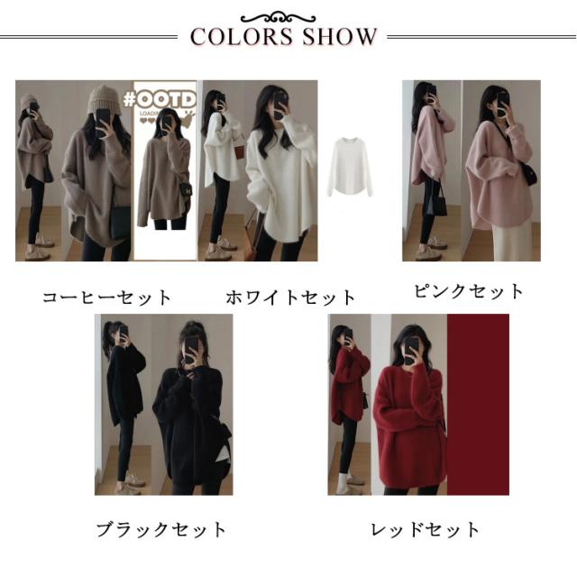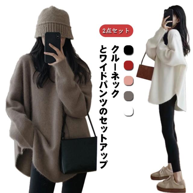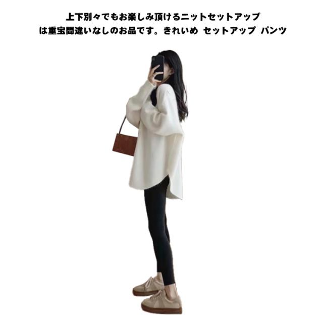 セットアップ レディース ニット セーター パンツ 春 秋 冬 カジュアル 長袖 レギンス 大人 カジュアル デイリー ライン トップス レギンス ボトムス パンツ ルームウェア 部屋着 上下 2点セット レイヤード風 ゆったり ロング丈 体型カバー