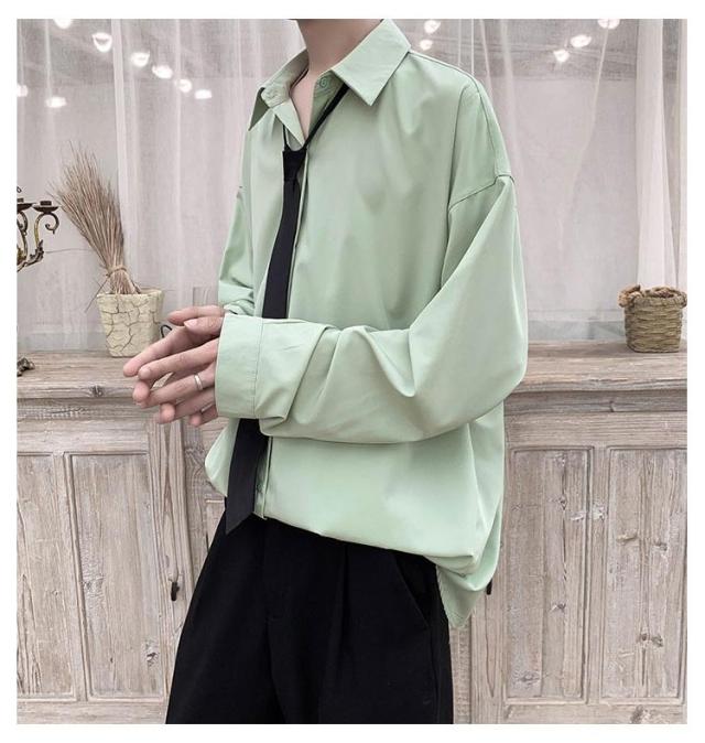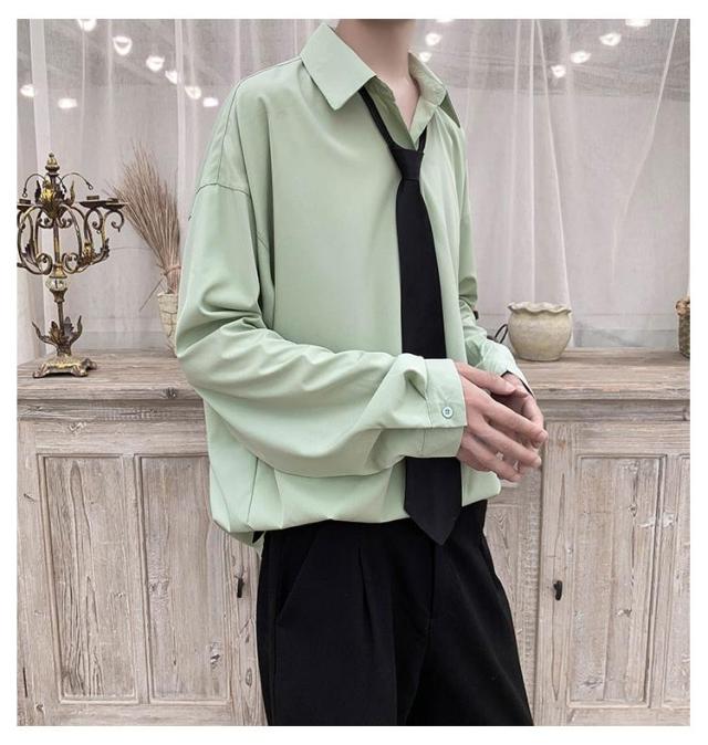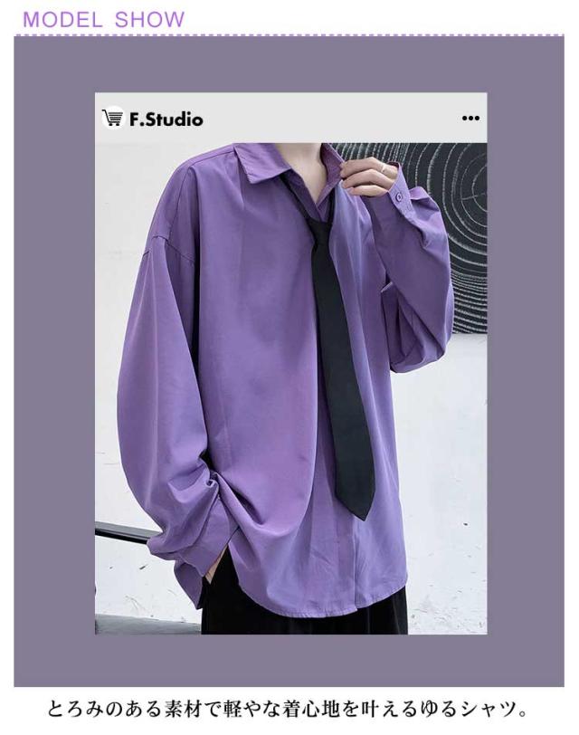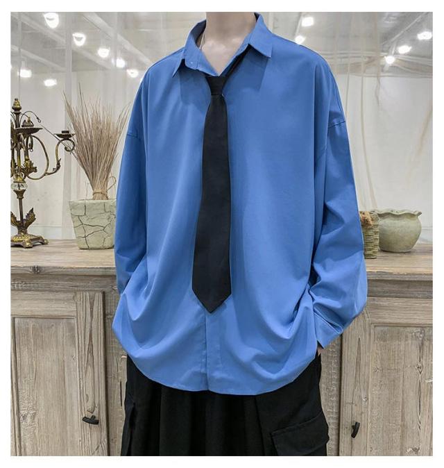 2点セット カジュアルシャツ メンズ とろみ 無地 ドロップショルダー 長袖 シャツ ネクタイ付き 韓国 長袖シャツ 春夏 春服 秋冬 韓国ファッション ストリート系 原宿系 ダンスウエア ダンス衣装