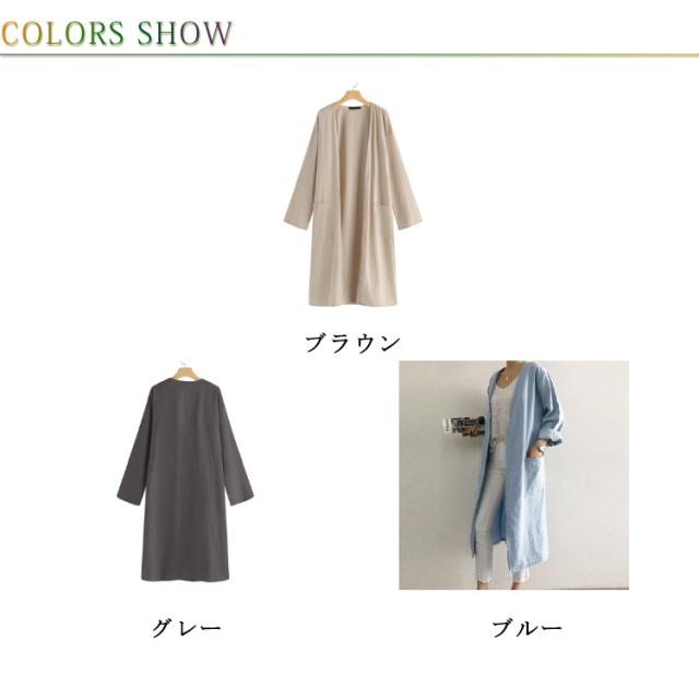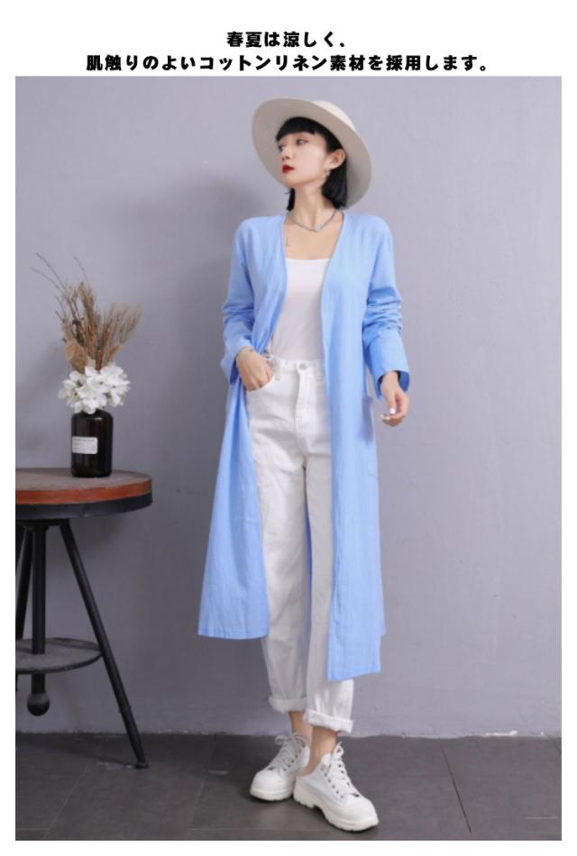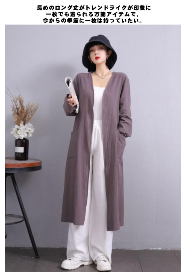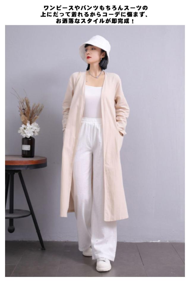 S-5XLサイズ!サマージャケット 送料無料 ロングジャケット トレンチコート 羽織り 上着 コート ジャケット レディース ロング丈 春 アウター ライトアウター 綿麻 無地 体型カバー ゆったり ノーカラー サマーカーディガン ポケット付き 無地 大きサイズ カジュアル 通勤 OL