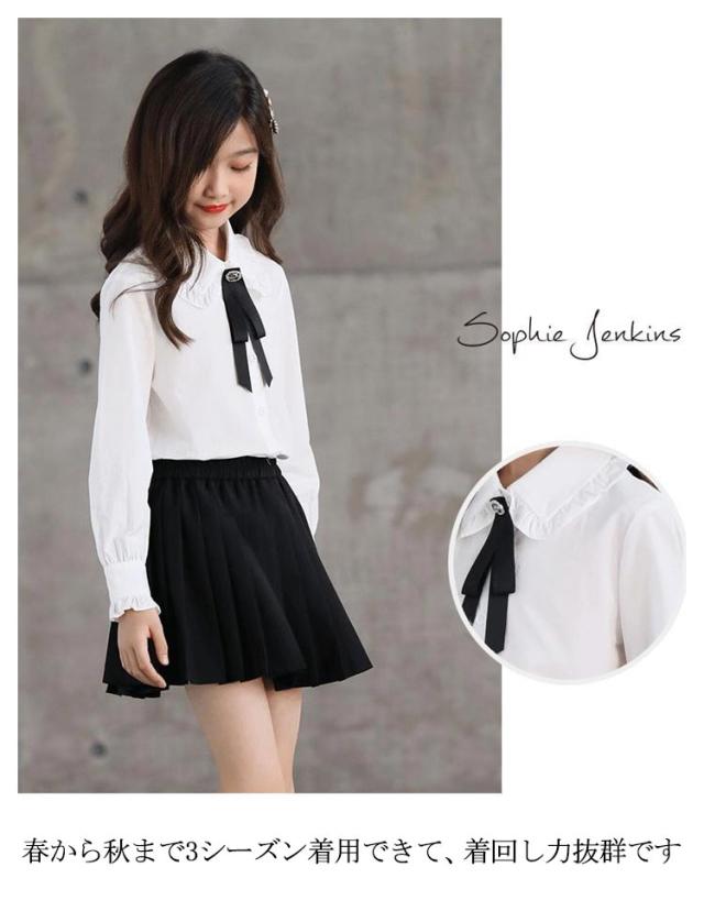 ブラウス 女の子 Yシャツ リボン付き フォーマル 子供服 送料無料 ホワイトシャツ 長袖 スーツインナー キッズ 子供スーツ ジュニア 大きいサイズ 入学式 卒業式 フォーマル 制服 発表会