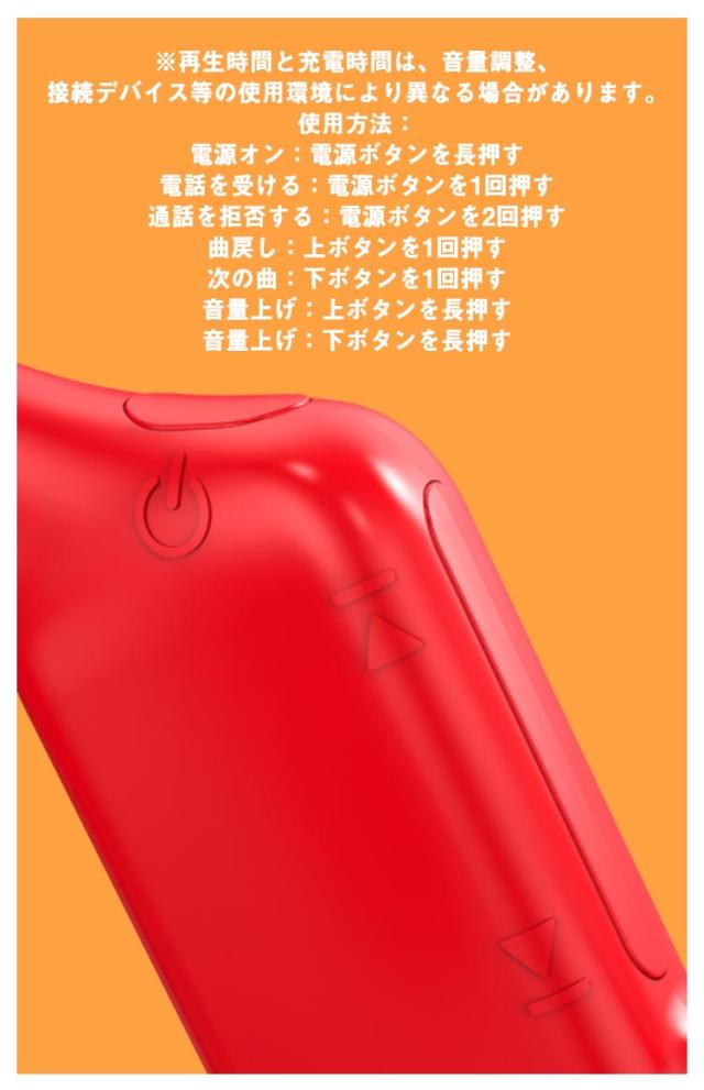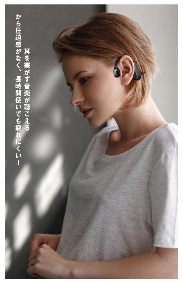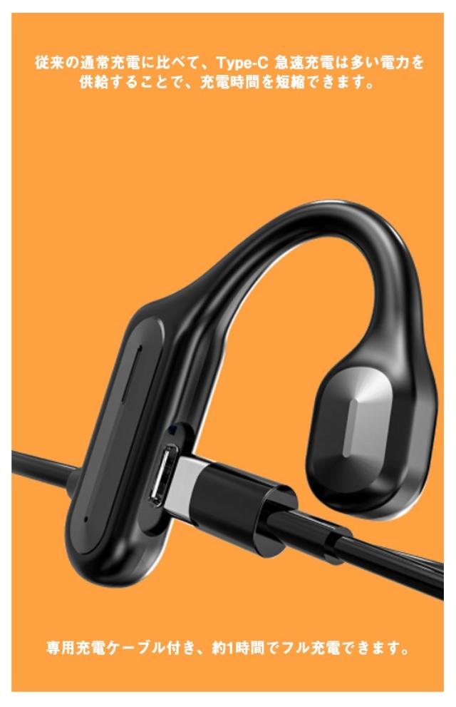 | 骨伝導イヤホンは骨を通して音が振動として脳に届く。 耳を塞がず音楽が聴こえるから圧迫感がなく、長時間使いでも疲れにくい! 環境音を聴きながら音楽を楽しめて、車の走行音などの危険な音に気づくことができ、安心・安全にサイクリング、ランニングなどスポーツを実現。 Bluetooth 5.2通信によって、屋外の混線した電波環境にも負けない、安定したブルートゥース接続を実現! スポーツだけでなく、在宅勤務でビデオ会議を頻繁にするビジネスパーソンにも役立ちます。 防水設計により、水の侵入を防ぐので、ランニング・ジムなどスポーツ時の汗やお風呂の湿気、ワークアウト中の汗と小雨での使用に耐える防水・防汗性能を備えております。 わずか15g重さで、装着している感覚がないほど自然なつけ心地が得られます。 従来の通常充電に比べて、Type-C 急速充電は多い電力を供給することで、充電時間を短縮できます。 イヤホンを1回フル充電で約8時間ご使用いただけます。 専用充電ケーブル付き、約1時間でフル充電できます。 ※再生時間と充電時間は、音量調整、接続デバイス等の使用環境により異なる場合があります。 使用方法: 電源オン:電源ボタンを長押す 電話を受ける:電源ボタンを1回押す 通話を拒否する:電源ボタンを2回押す 曲戻し:上ボタンを1回押す 次の曲:下ボタンを1回押す 音量上げ:上ボタンを長押す 音量上げ:下ボタンを長押す | |