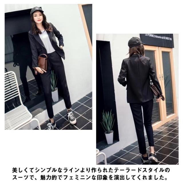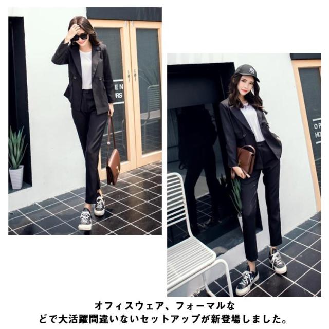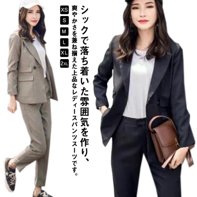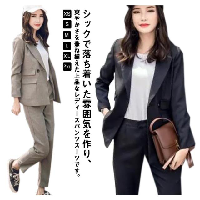 パンツスーツ レディース セットアップ 上下 2点セット テーラードジャケット オフィス カジュアル フォーマル 着痩せ おしゃれ シンプル ファッション 大きいサイズ 通勤 長袖 上品 通勤 OL ビジネス 春秋 送料無料