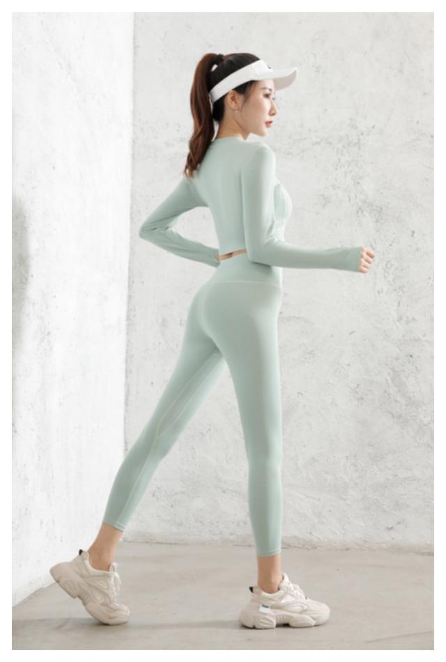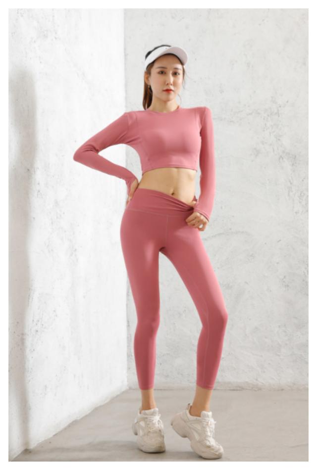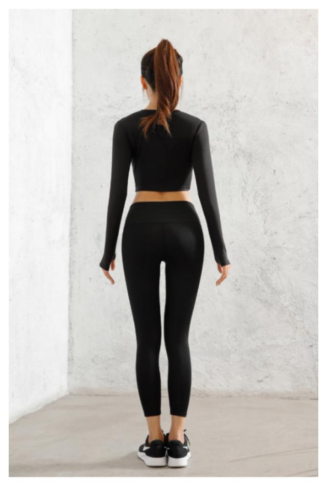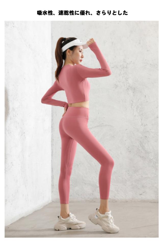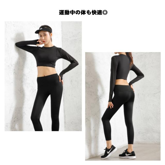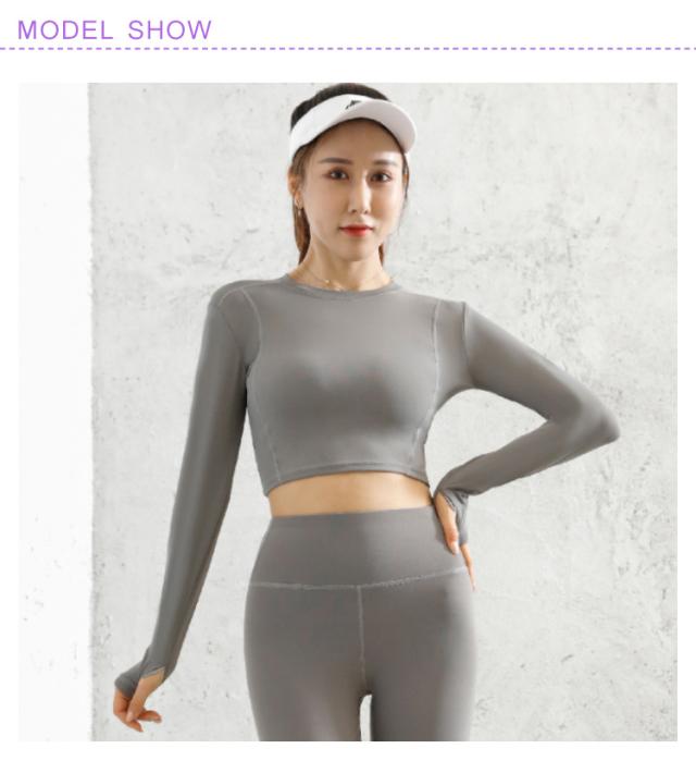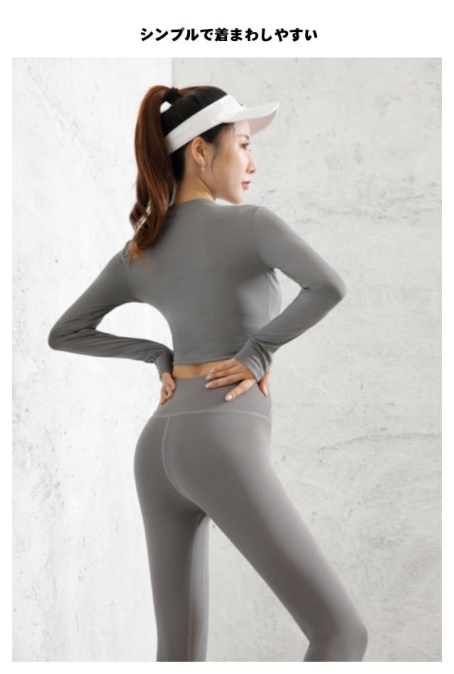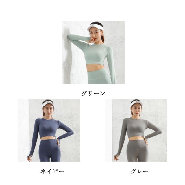 ヨガウェア レディース ヨガ トップス 長袖 ショート丈 吸汗 速乾 クロップド丈 指穴 サムホール 韓国 シンプル 無地 ウエスト クロス へそ出し 細見え フィットネス ホットヨガ ピラティス ストレッチ ダンス エアロビクス