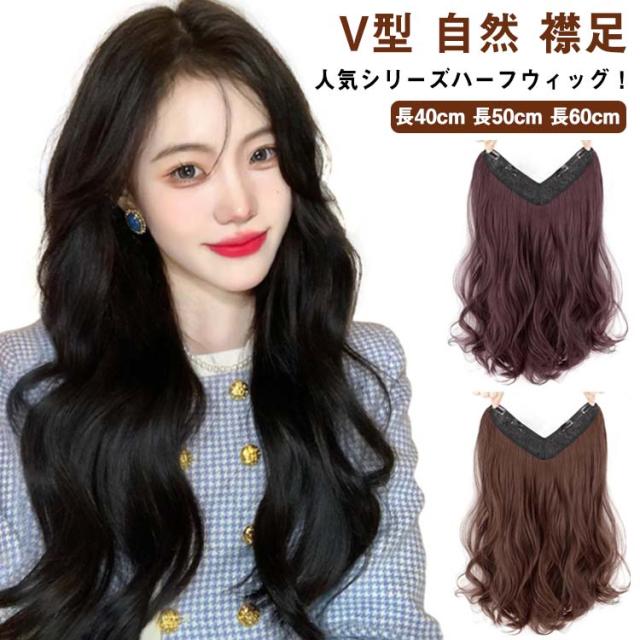 部分ウィッグ ハーフウィッグ ワンタッチ 簡単操作 つけ毛 襟足 ウィッグ カール ロング ミディアム丈 長40cm 長50cm 長60cm 医療用ウィッグ キューブウィッグ V型 自然 ナチュラル つむじ