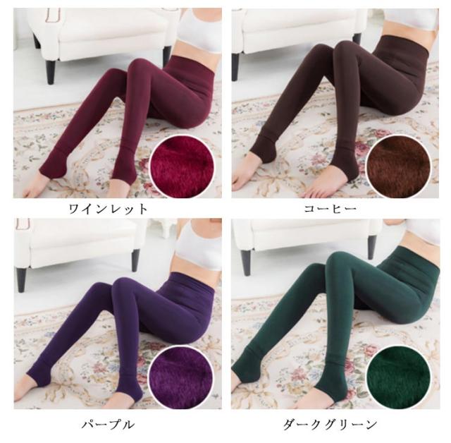 | 体にフィットし絶妙な美しい足ラインを強調長足・細脚演出 穿いた瞬間から暖かい裏起毛レギンスパンツ♪ ウエストゴムと伸縮性のある生地でフィット&ストレッチ。 ふわふわの裏起毛素材が寒い冬の強い味方に。 股上深めのハイウエスト仕様なので、お腹まで あたたかい! | |