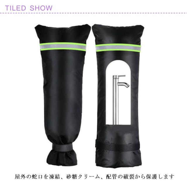 蛇口カバー 保護カバー 簡単に凍結防止対策 冬用 水道蛇口用 凍結防止 屋外 水道凍結防止 水道管 蛇口 耐寒性 断熱性 防水性 屋外水栓凍結防止袋 反射テープ付き ブラック 黒