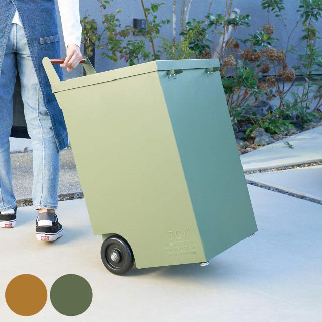 ゴミ箱 70L 屋外兼用 トラッシュカート ( ごみ箱 70リットル 屋外 大型 大容量 カート おしゃれ 外用 ふた付き アースカラー キャスター付き 丈夫 角型 落ち葉 ゴミ箱 ふた付き ゴミ箱 おしゃれ)