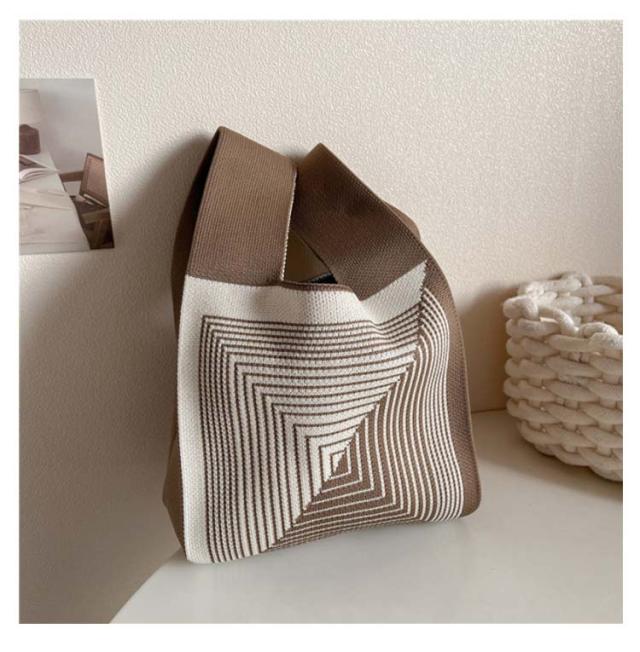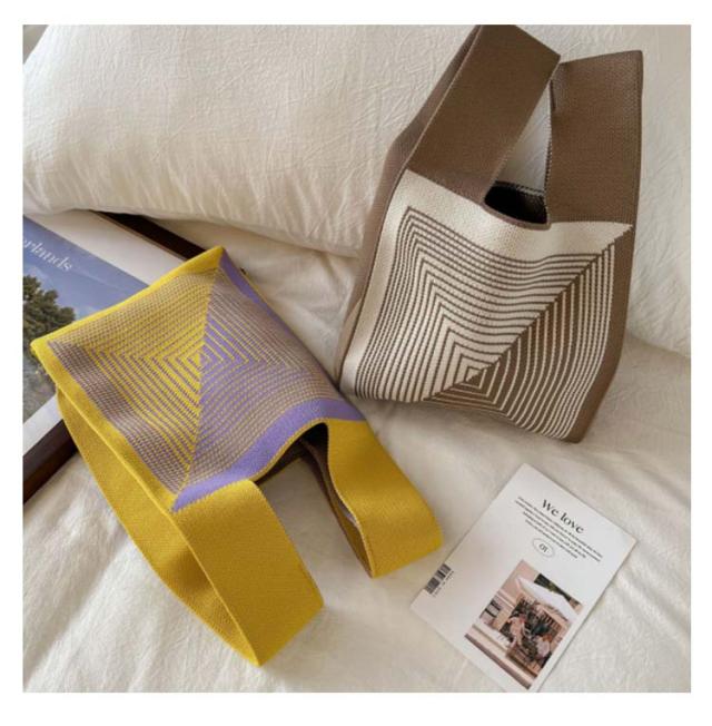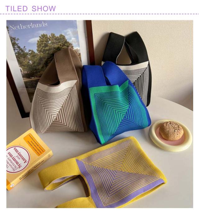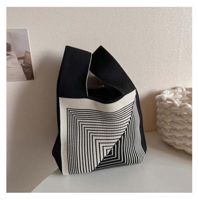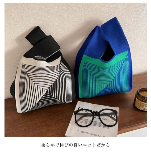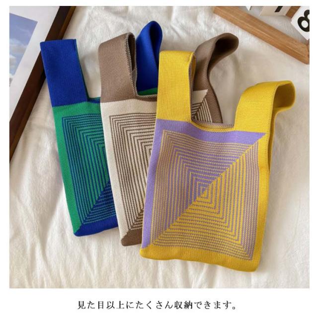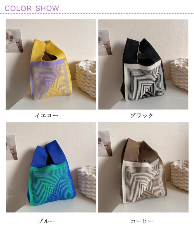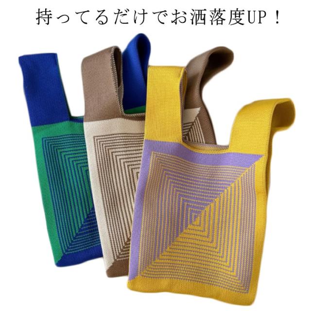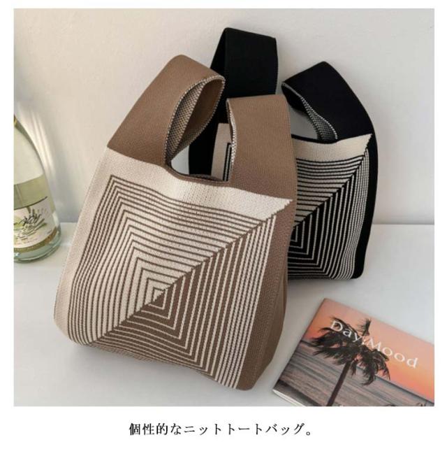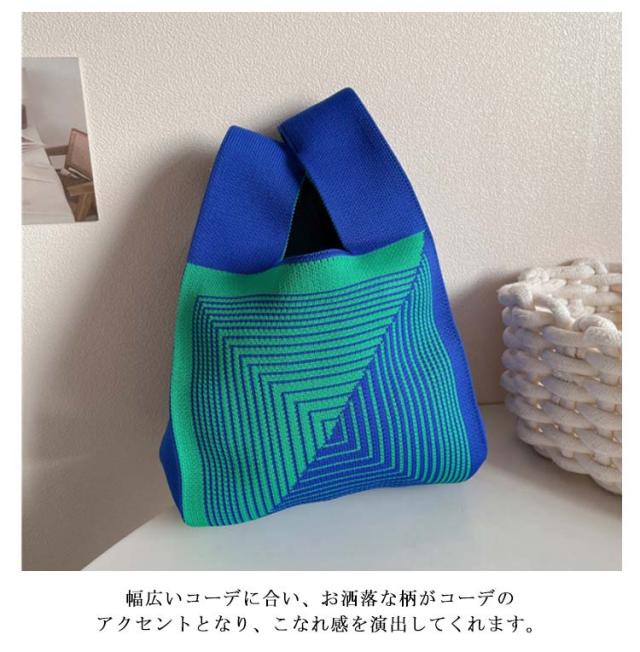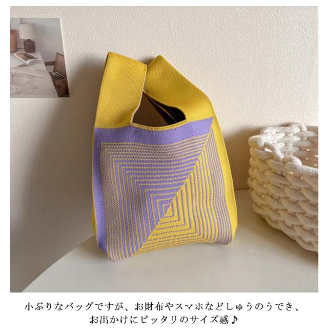 ミニ トートバッグ ニット レディース ミニバッグ 秋冬 春夏 オールシーズン サマーニット ミニトートバッグ トートバッグ エコバッグ ニットバッグ 編みバッグ ストライプ ジオメトリー 幾何学模様 おしゃれ かわいい トレンド